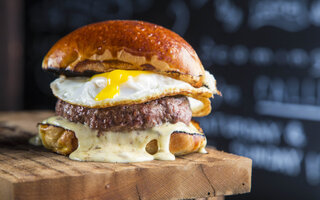 Truffle Burger: pão com amêndoas, burger 180g grelhado no carvão, maionese trufada e ovo frito - R$ 44,00.