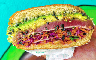 Primeira casa do Brasil dedicada exclusivamente ao avocado, o Avoca Toast conta em seu cardápio com Avoca Ahi Tuna (R$ 36, no salão), que leva avocado Hass fatiado, atum selado fresco, asian slaw, maionese (que pode ser wasabi, kewpie ou Sriracha) e furikake (tempero japonês crocante a base de alga marinha e gergelim torrado), servido no pão de hambúrguer.