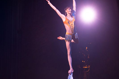 Essa magnífica proposta depas-de-deux, com contorcionismo e equilíbrio de mão, é feita por uma dupla de pequenas pessoas dentro de um anel vertical colocado em uma plataforma giratória.