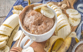 Bolo de Caneca de Banana com Calda de Cacau