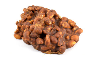 Coloque em uma panela o amendoim com o açúcar, deixando queimar o açúcar por igual até derreter totalmente. 2. Acrescente o leite condensado, a margarina e o chocolate, mexa até aparecer o fundo da panela. 3. Depois de desligar o fogo mexa mais um pouco. 4. Despeje em uma pedra mármore untada com margarina. 5. Corte ainda morno. Tempo de preparo: 1 hora | Rendimento: 20 porções