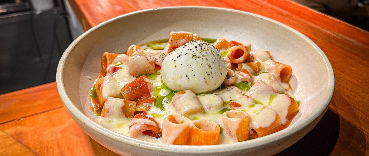 Gloria Coelho é festejada com o Mezze Rigate com Molho Pomodoro San Marzano (R$ 113), com fonduta de brie, mini burrata, azeite de manjericão e citrone de limonada harmonizado com o tinto Special Cuvée, com blend de safras.