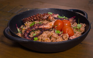 O restaurante sugere o Risoto Al Mare, que leva Arroz arbóreo, camarões, lula, polvo e tomates (R$ 89,90).