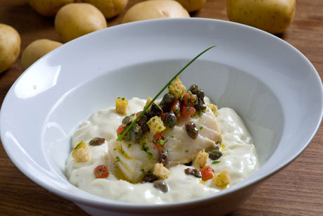 Uma receita da chef Nick Chaves: Bacalhau com Natas (bacalhau em lâminas com batata e creme branco à base de creme de leite fresco), vendido por quilo (R$ 158/kg) no balcão da Rotisseria.