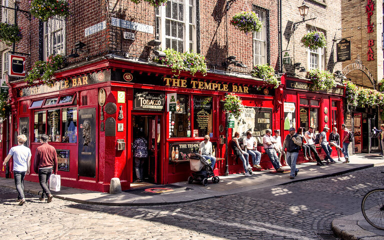 O melhor lugar para curtir a vida noturna de Dublin é o Temple Bar. A região é conhecida pelas suas ruelas recheadas por pubs famosos onde se pode provar a autêntica cerveja irlandesa. Lá está o The Temple Bar, o pub mais famoso da cidade e que se tornou uma verdadeira marca com direito a loja e tudo mais.