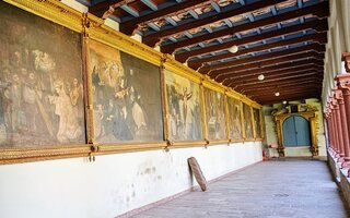As telas do museu expostas nos corredores do convento, pintadas com a técnica óleo sobre tela, tem proporções gigantescas e retratam cenas importantes ligadas à ordem religiosa.