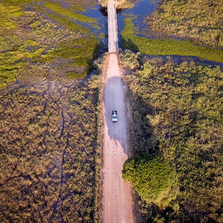Como o próprio nome sugere, a fascinante Transpantaneira atravessa boa parte do Pantanal, no Mato Grosso. São 145 km que ligam Porto Jofre, às margens do Rio Cuiabá, a Poconé e atravessam paisagens espetaculares, não raramente salpicadas por animais selvagens como jacarés e tuiuiú.
